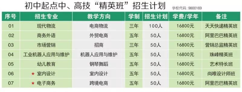 2. 助學政策:學生每讀滿一學年可免收:空調宿舍住宿費800元/年(精英班的學生入住1500元/年的6人間公寓宿舍)、校服費400元(含五套)、軍訓服裝租賃費85元、床上用品費380元(含8件套)。(計劃一般專業招生3750人,精英班招生620人。預計今年助學補貼金額達:771萬)