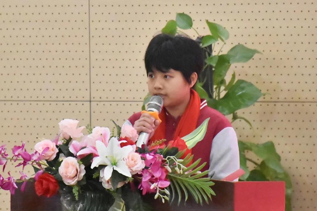 (903班學生代表石晶:同學們,冰雪消融化作千傾碧波,朗朗書聲鋪就錦繡前程,讓我們增強時間意識、拼搏意識、競爭意識。不負學校重托,不負恩師厚望,不負家長囑托,不負青春夢想。)